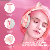 Купить Игровые наушники Onikuma K9-7.1 Pink Cat розовые с кошачьими ушками и подсветкой с доставкой по всей России.