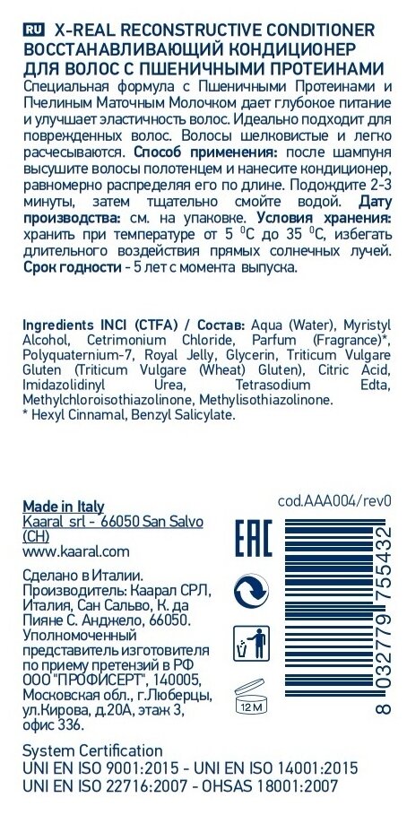 Kaaral кондиционер AAA X-Real Reconstructive с пшеничными протеинами, 1000 мл: сравнение цен, характеристики, фото, актуальное наличие и цены.