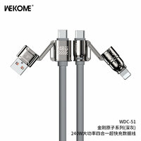 Купить Кабель 4 в 1 WEKOME KINKONG WDC-51, USB/USB-C — Type-C/Lightning, 240W, длина 1.2м, для передачи данных, серый с доставкой по всей России.