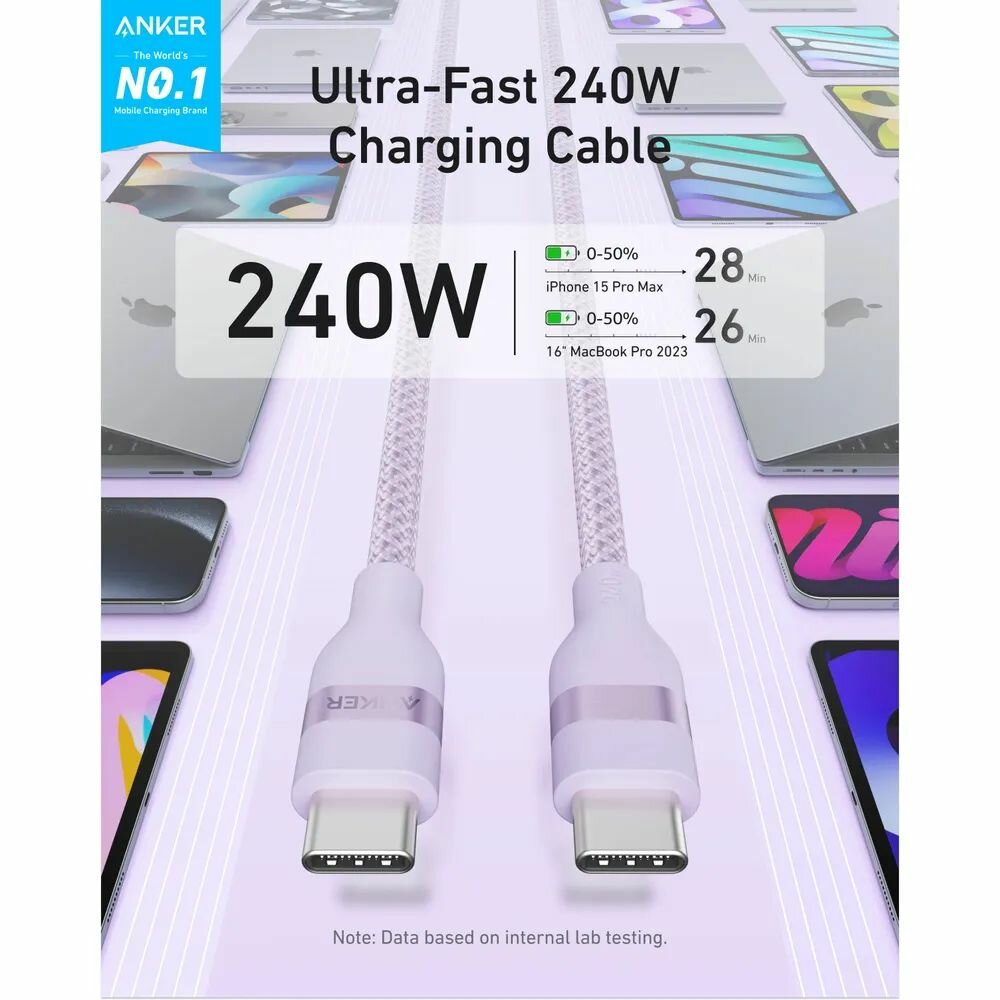 Кабель ANKER USB-C to USB-C 240W 1.8 метра (A82E2) — фиолетовый: сравнение цен, характеристики, фото, актуальное наличие и цены.