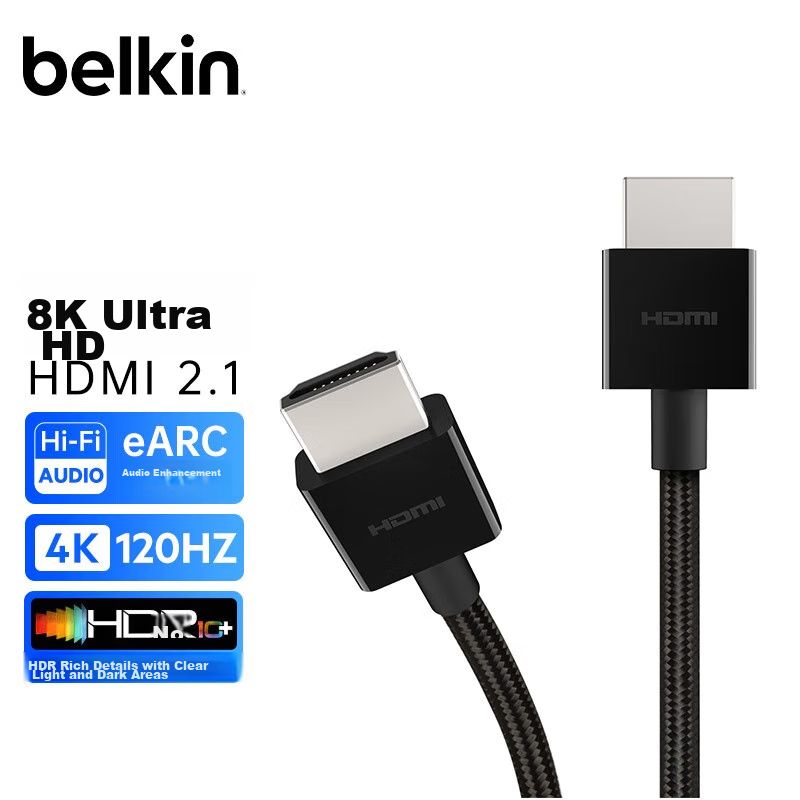 Belkin HDMI 2.1 Extension Cable, 48Gbps Monitor Connection Cable, 4K Dynamic HDR High-Definition Video Cable, 8K Digital EARC Cable, Braided 1-Meter AV10176: сравнение цен, характеристики, фото, актуальное наличие и цены.