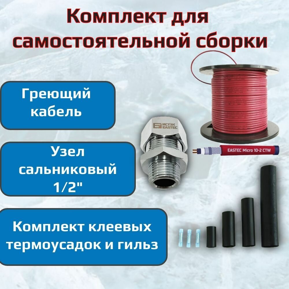 Купить Кабель для обогрева в трубу EASTEC MICRO 10 Вт/м (комплект для самостоятельной сборки) 5 метров с доставкой по всей России.