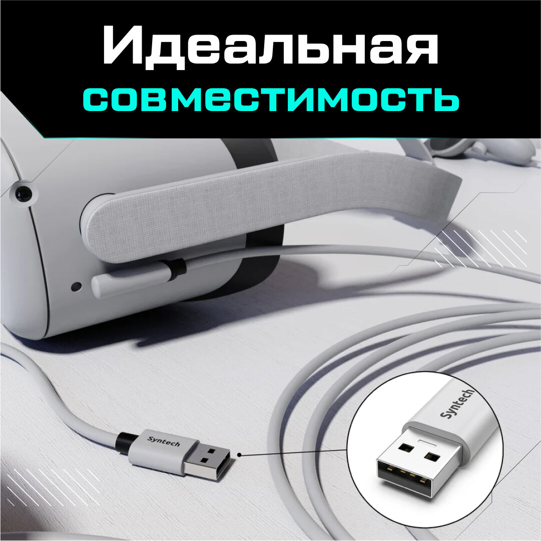 Кабель для Oculus Quest 3 / Quest 2 / Quest Pro / Pico 4 Syntech 3 метра белый: сравнение цен, характеристики, фото, актуальное наличие и цены.