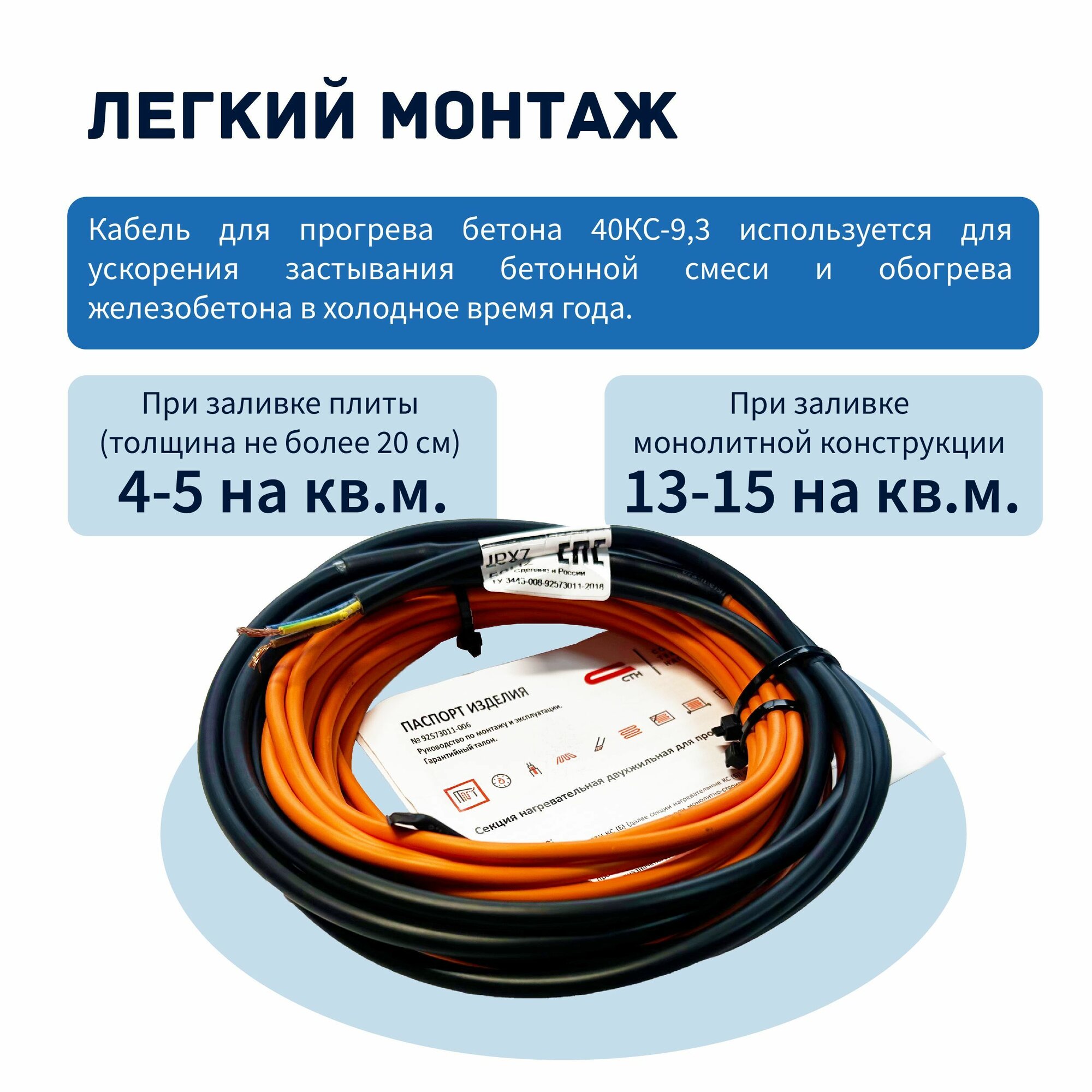 Купить Кабель для прогрева бетона промышленник 9 метров 220 вольт с доставкой по всей России. Кабель для прогрева бетона промышленник 9 метров 220 вольт: сравнение цен, характеристики, фото, актуальное наличие и цены.