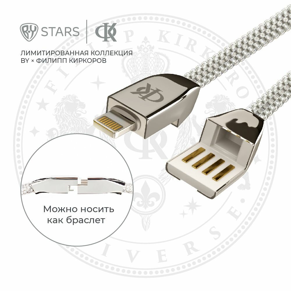 Купить Кабель для зарядки Lightning, Филипп Киркоров BY, 1 м, быстрая зарядка 2.4 А, 12W, серебряный с доставкой по всей России.