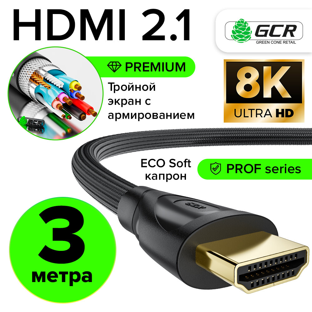 Кабель HDMI 2.1 серия Premium Ultra HD 3D HDR 4:4:4 48 Гбит/с для Apple TV PS4 Xbox One коннекторы 24К GOLD (GCR-H203) черный 3.0м: сравнение цен, характеристики, фото, актуальное наличие и цены.