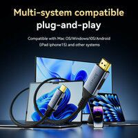 Кабель Jasoz HDMI-Type-c 4K 60Hz, 2К 120HZ, HDR, eARC, 1.2 метра (120 см) представляет собой высококачественный видеокабель, обеспечивающий быстрое и стабильное соединение с множеством устройств с поддержкой Thunderbolt 3. Благодаря усовершенствованной технологии передачи аудио eARC достигается высококлассная передача звука и изображения без задержек. Auto Low Latency Mode, Quick Frame Transport, Ultra High Definition (UHD), HDR 10+ и Dolby Vision гарантируют безупречное качество. Провод оснащен позолоченными контактами, что является залогом надежности и долговечности. Помехи исключены полностью так как кабель экранированный. Чистое и стабильное изображение порадует Вас и принесет только положительные эмоции от просмотра ТВ, игр на ПК, ноутбуке, прослушивания музыки. Частота 60Hz обеспечит плавную картинку. Достаточно подключить к нему ваши устройства и наслаждаться видео высокой чёткости. Он позволит Вам смотреть любимые фильмы и передачи в 4К на внешнем устройстве, подключив к нему ваш Macbook или другое устройство с разъемом USB-C. Кабель адаптер Type-C - HDMI 4K 60Hz также совместим с Thunderbolt.