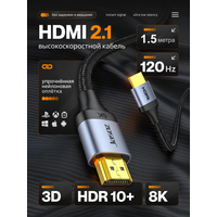 Купить Кабель Jasoz HDMI — HDMI 2.1 8K 60Hz, 4K 120Hz, HDR, eARC, Тканевая оплетка 1.5м. с доставкой по всей России.