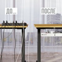 Этот кабель-канал обладает прямоугольной формой и подходит ко всем типам столов и является надежным органайзером для проводов ваших устройств. Кабель канал крепится на четыре крючка, по два с каждой стороны.
