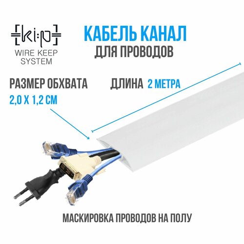 Ширина аксессуара для кабелей 8,1 см, длина - 200 см, высота 1,7 см, что позволит поместить необходимое количество проводов и шнуров разной толщины. Также от общей длины изделия (2 метра) - Вы самостоятельно можете отрезать любую необходимую длину.