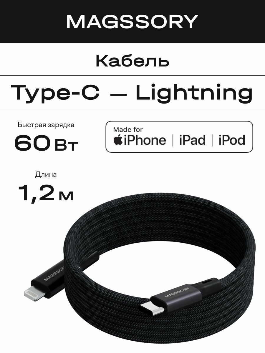 Магнитный кабель бренда Magssory CBL003 - это инновационное решение для вашего удобства при зарядке устройств. Благодаря уникальной конструкции с магнитами кабель type-c - lightning быстрая зарядка iphone легко скручивается, не заламывается и не путается, что значительно облегчает его использование.