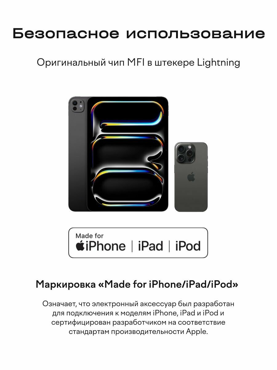 Особенностью этого кабеля для зарядки айфон является быстрая зарядка мощностью 60 Вт, что делает его идеальным выбором для устройств с разъемами lightning. Преимущество зарядного кабеля проявляется в его высокой скорости зарядки по сравнению со стандартными кабелями.