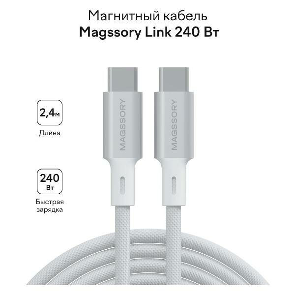 Кабель Magssory Link C Magnetic, USB Type-C, длина 2,4 м, магнитный: сравнение цен, характеристики, фото, актуальное наличие и цены.
