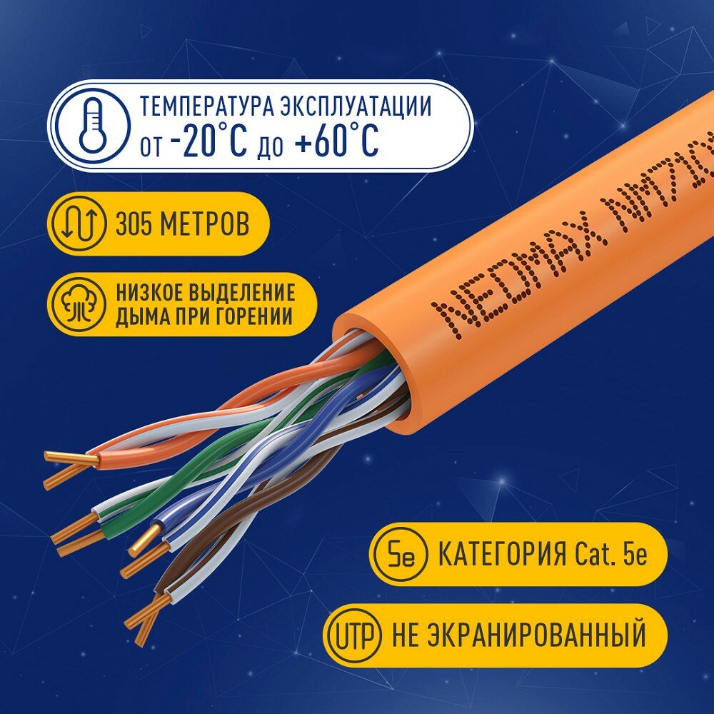 [ Витая пара] Кабель NEOMAX [NM710111-100М-РТ] U/UTP cat.5e 4x2x0.52, 24 AWG, Медь, внутренний, ZH нг(А)-HF (LSZH), 100м, оранжевый