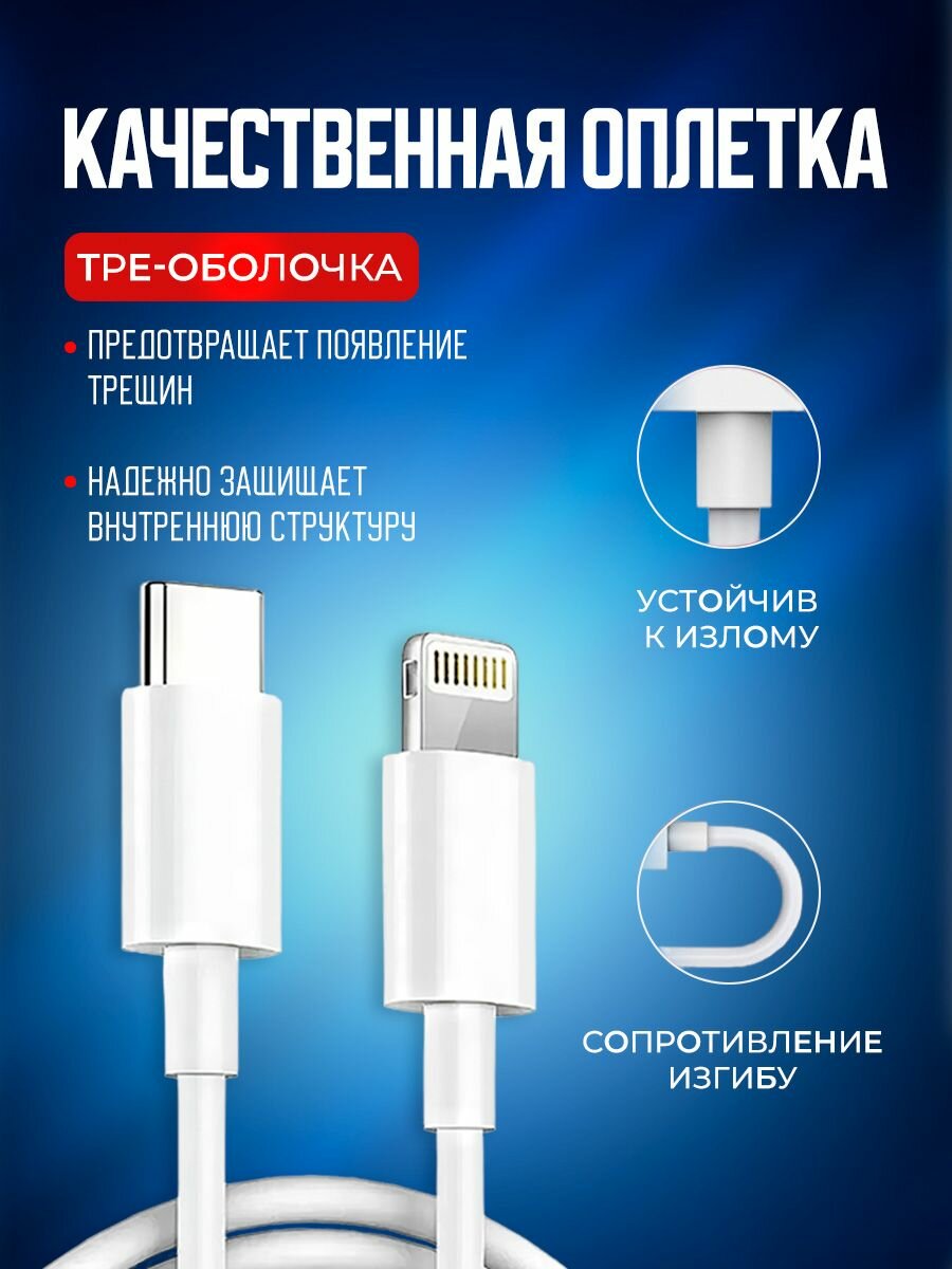 Кабель с блоком питания 1.5 м Type C на Lightning 3A 20W для быстрой зарядки телефона Apple: сравнение цен, характеристики, фото, актуальное наличие и цены.
