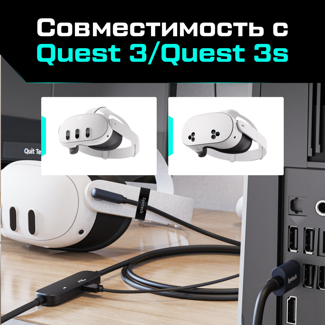 Кабель с зарядным портом для Oculus Quest 3/2 и 3S, Pico 4/Ultra Syntech Fast Charging Link, 5 метров, черный: сравнение цен, характеристики, фото, актуальное наличие и цены.