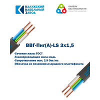 Купить Кабель силовой ВВГ-Пнг(А)-LS 3х1.5 кв. мм калужский кабельный завод ГОСТ 30 метров с доставкой по всей России. Кабель силовой ВВГ-Пнг(А)-LS 3х1.5 кв. мм калужский кабельный завод ГОСТ 30 метров: сравнение цен, характеристики, фото, актуальное наличие и цены.