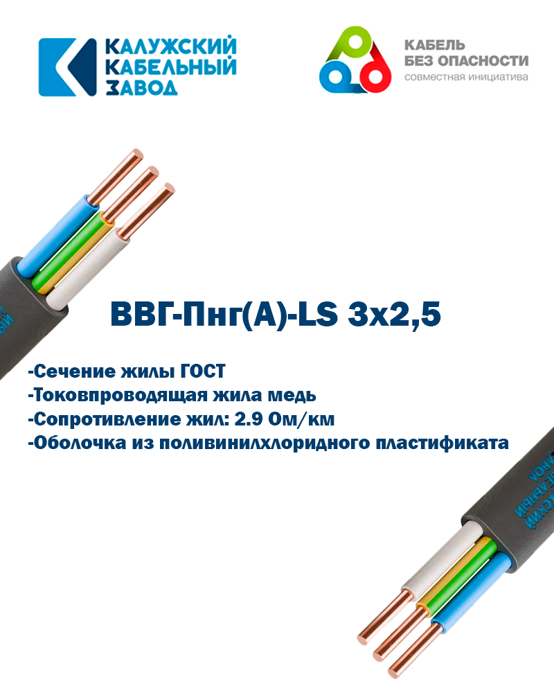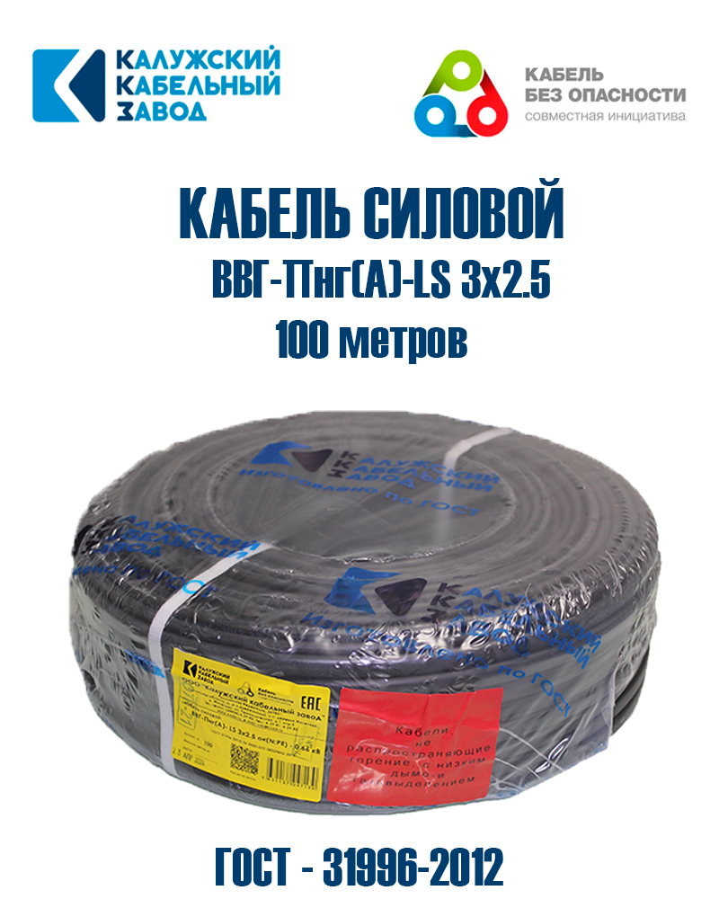 Купить Кабель силовой ВВГ-Пнг(А)-LS 3х2.5 кв. мм калужский кабельный завод ГОСТ черный 20 м с доставкой по всей России. Кабель силовой ВВГ-Пнг(А)-LS 3х2.5 кв. мм калужский кабельный завод ГОСТ черный 20 м: сравнение цен, характеристики, фото, актуальное наличие и цены.