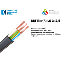 Купить Кабель силовой ВВГ-Пнг(А)-LS 3х2.5 кв. мм калужский кабельный завод ГОСТ черный 10 м с доставкой по всей России. Кабель силовой ВВГ-Пнг(А)-LS 3х2.5 кв. мм калужский кабельный завод ГОСТ черный 10 м: сравнение цен, характеристики, фото, актуальное наличие и цены.