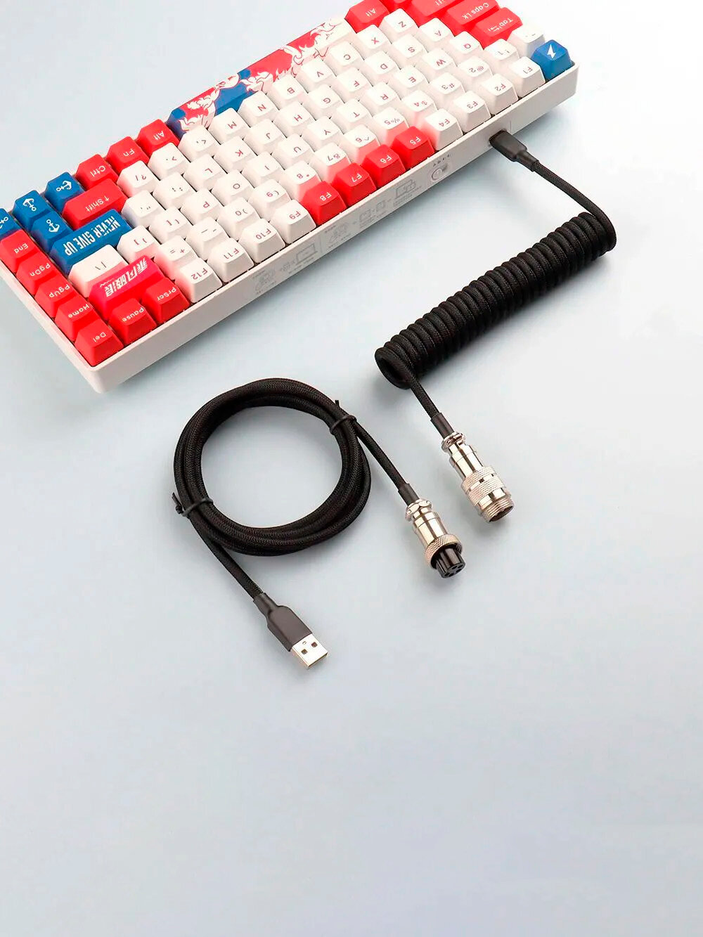 Кабель VOROTEX с разъёмом GX16 Aviator для механических клавиатур изготовленный на заказ с использованием высококачественного медного провода с алюминиевой экранирующей фольгой, покрыт двойной оплеткой из прочного и долговечного материала, который не боится изгибов и не сломается.