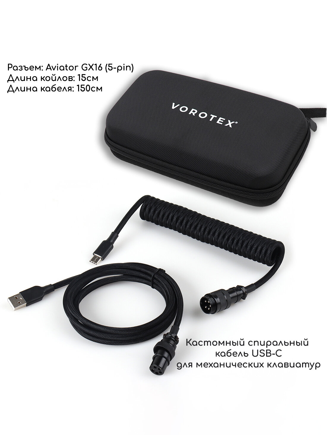 Кабель Type-C к USB поддерживает безопасную, быструю зарядку и скорость синхронизации данных. Спиральный кабель клавиатуры VOROTEX с разъёмом GX16 совместим с большинством механических игровых клавиатур USB-C.