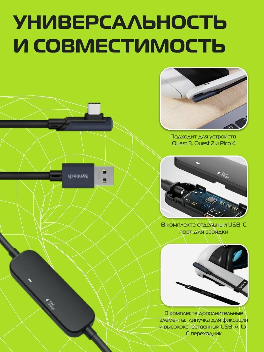 Купить Кабель Syntech для быстрой зарядки Quest 3/3S/ Pico 4/ Ultra 5 метров с доставкой по всей России. Кабель Syntech для быстрой зарядки Quest 3/3S/ Pico 4/ Ultra 5 метров: сравнение цен, характеристики, фото, актуальное наличие и цены.