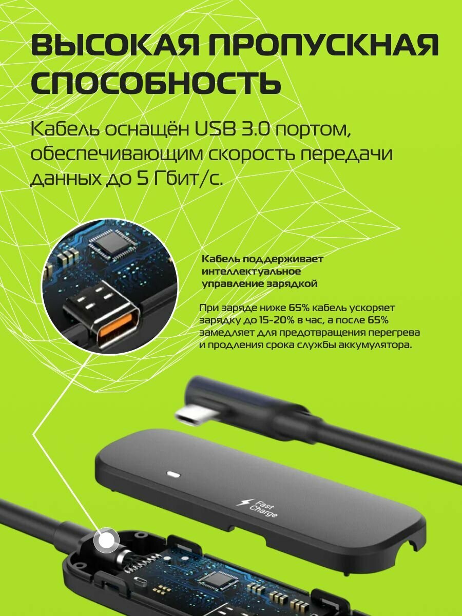 Кабель изготовлен с учетом всех современных стандартов, что гарантирует стабильную работу и высокую скорость передачи информации. Он отлично подходит как для профессиональных, так и для домашних пользователей, предоставляя максимальную гибкость и удобство. Долговечные материалы и качественная сборка делают его надежным спутником для ваших мобильных устройств.