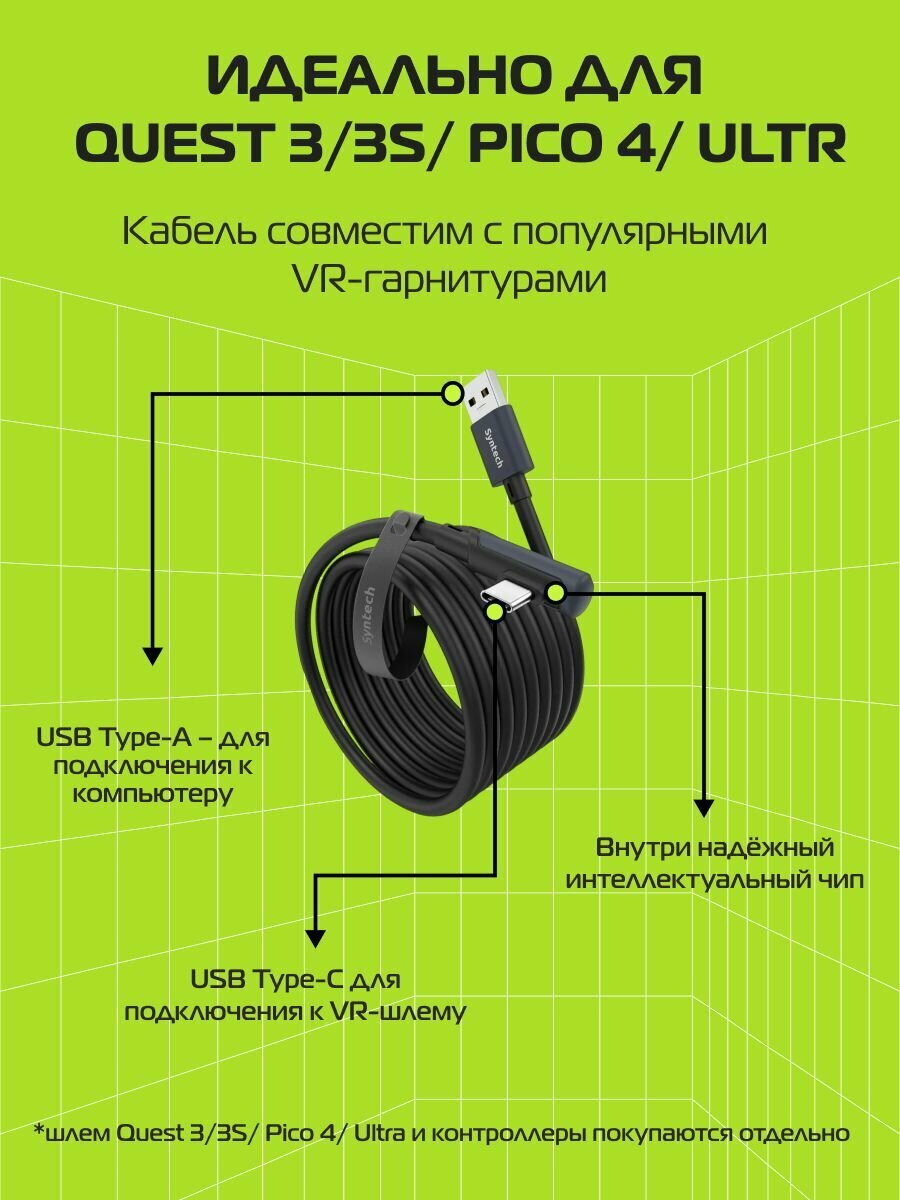 Купить Кабель Syntech Link для Quest 3/3S/ Pico 4/ Ultra 5 метров с доставкой по всей России. Кабель Syntech Link для Quest 3/3S/ Pico 4/ Ultra 5 метров: сравнение цен, характеристики, фото, актуальное наличие и цены.