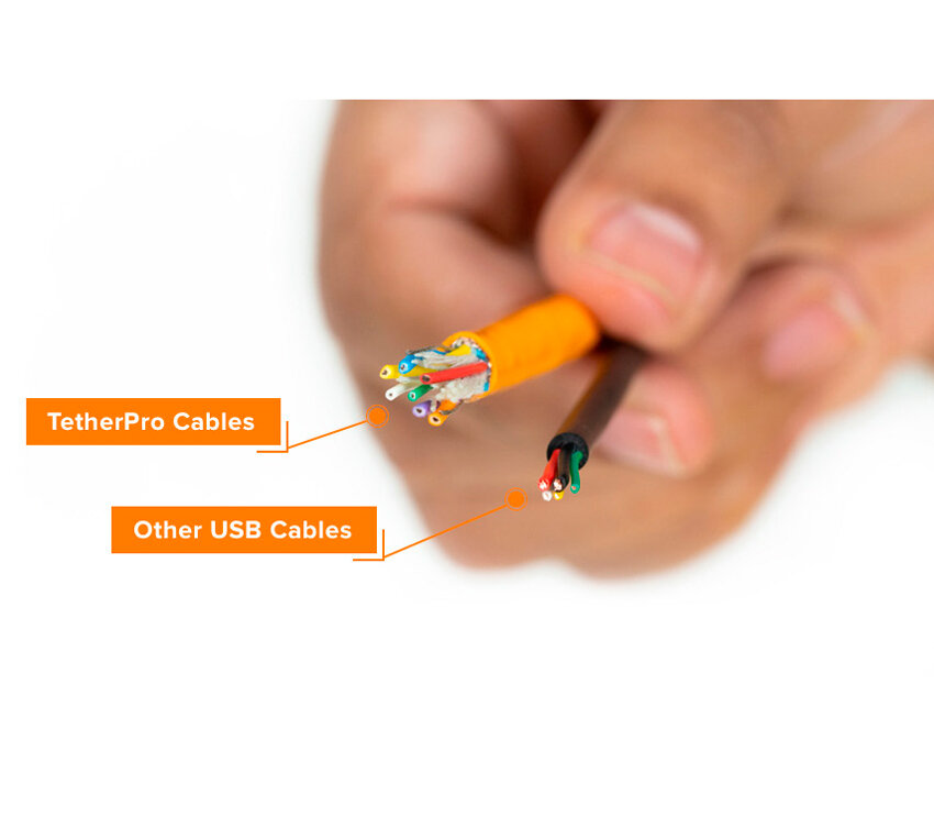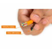 Кабели Tether Tools отличаются отличной защитой от помех, толстыми нитями и двойной оплеткой (тканевая + силиконовая), благодаря чему они поддерживают надежное соединение с высокой скоростью передачи информации на значительном расстоянии, без дополнительных усилителей сигнала.