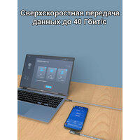 Этот USBC кабель предназначен для современных гаджетов и оборудования. Он оснащен встроенным чипом идентификации (E-MARKER) и обеспечивает высочайшую пропускную способность — до 40 Гбит/с, позволяя вам мгновенно обмениваться большими объемами данных между устройствами, будь то передача фильмов Ultra HD, фотографий или рабочих документов.
