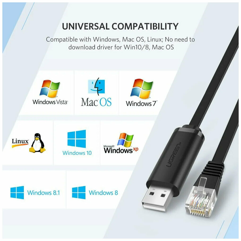 Кабель UGREEN CM204 USB-A to RJ45 Console Cable
