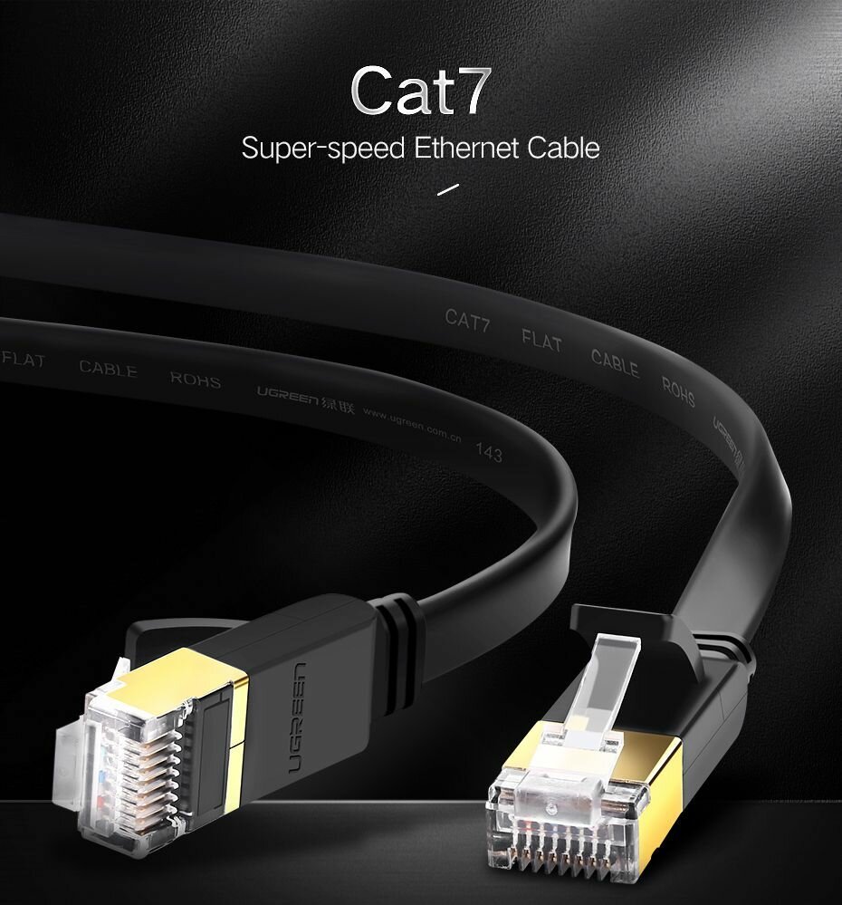 Кабель UGREEN NW106 (11264) Cat 7 U/FTP Lan Cable Flat Design. Длина: 8м. Цвет: черный: сравнение цен, характеристики, фото, актуальное наличие и цены.