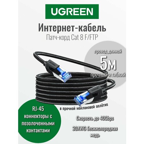 Купить Кабель UGREEN NW153 (80433) Cat8 CLASS? F/FTP Round Ethernet Cable With Braid. Длина: 5м. Цвет: черный с доставкой по всей России.