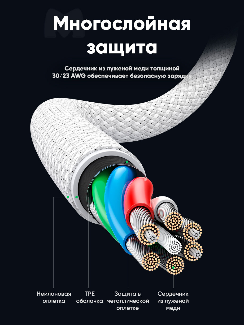 Провод отлично подойдет для зарядки различных устройств, включая оригинальные провод айфон 15 и другие современные гаджеты. Если вам нужен шнур для телефона для различных задач, вы можете быть уверены, что этот провод справится со всем, что вы ему поручите. Обеспечьте себе удобство и эффективность с помощью данного кабеля, и забудьте о медленной зарядке.
