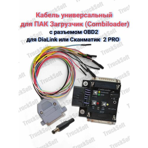 Данный кабель работает по K-Line, CAN + GPT. Каждый провод имеет стикер маркировку. На плате установлен разъем OBD2 для подключения адаптера DiaLink, а также выключатель питания адаптера DiaLink (необходимость подачи или отключения питания уточняйте в Документации программатора Combiloader). Все уточнения по работе смотрите в Документации программатора Combiloader. Так же на плате есть зажимы "крокодилы" для подачи питания +12В. Провода коммуникации имеют по 2 типа контактов: игольчатый (такие контакты используются, к примеру, в 81-контактных разъемах ЭБУ), а также широкий (например, в 55-контактных разъемах ЭБУ).