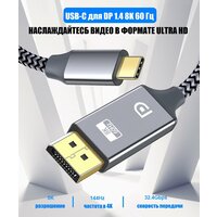 Однонаправленный кабель USB-C 3.1 - DP 1.4. Не поддерживает передачу сигнала от DP к USB-C. Подключает устройства с разъемом USB-C к дисплею с интерфейсом DisplayPort.