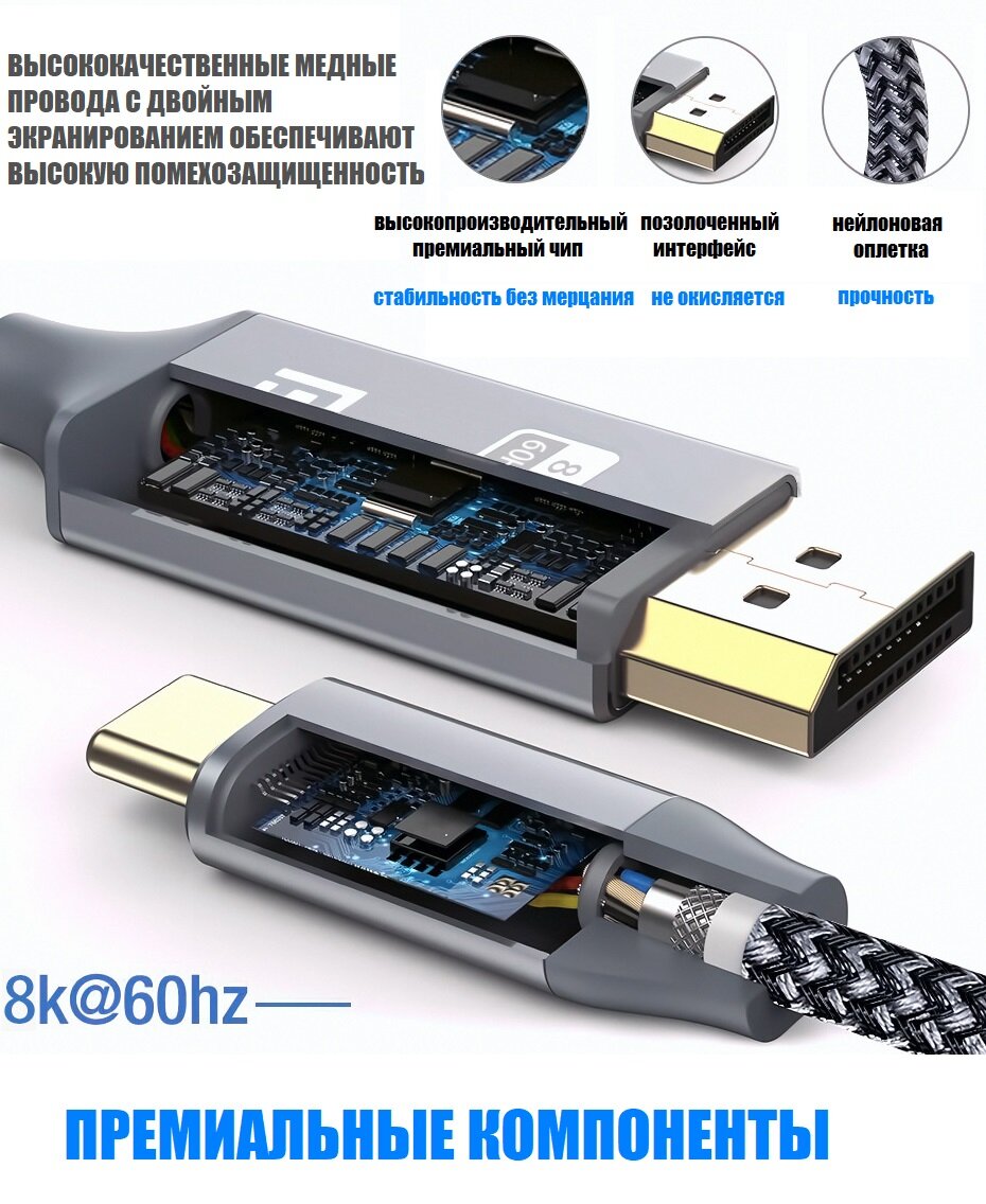 Кабель адаптер поддерживает лучшую для геймеров частоту обновления - 8K при 60 Гц, 8K при 30 Гц, 5K при 60 Гц, 4K при 120 Гц, 4K при 144 Гц, 4K при 90 Гц, 4K при 60 Гц, 2K при 240 Гц, 2K при 200 Гц, что делает его оптимальным выбором для более плавного игрового процесса без разрывов.