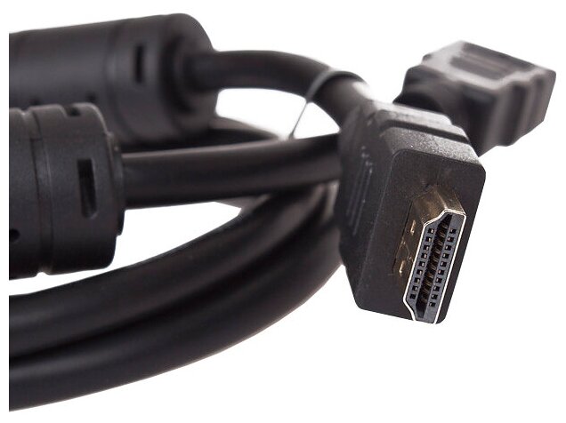 Кабель оснащен двумя ферритовыми кольцами-фильтрами, которые защищают сигнал от электромагнитных помех и улучшают качество изображения и звука.