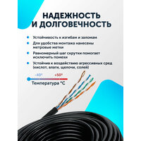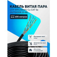 Купить Витая пара кабель уличный U/UTP 4 пары 8 жил 24 AWG PE Cu CAT 5e (0.48) Медь UTP интернет кабель сетевой 100 метров с доставкой по всей России.