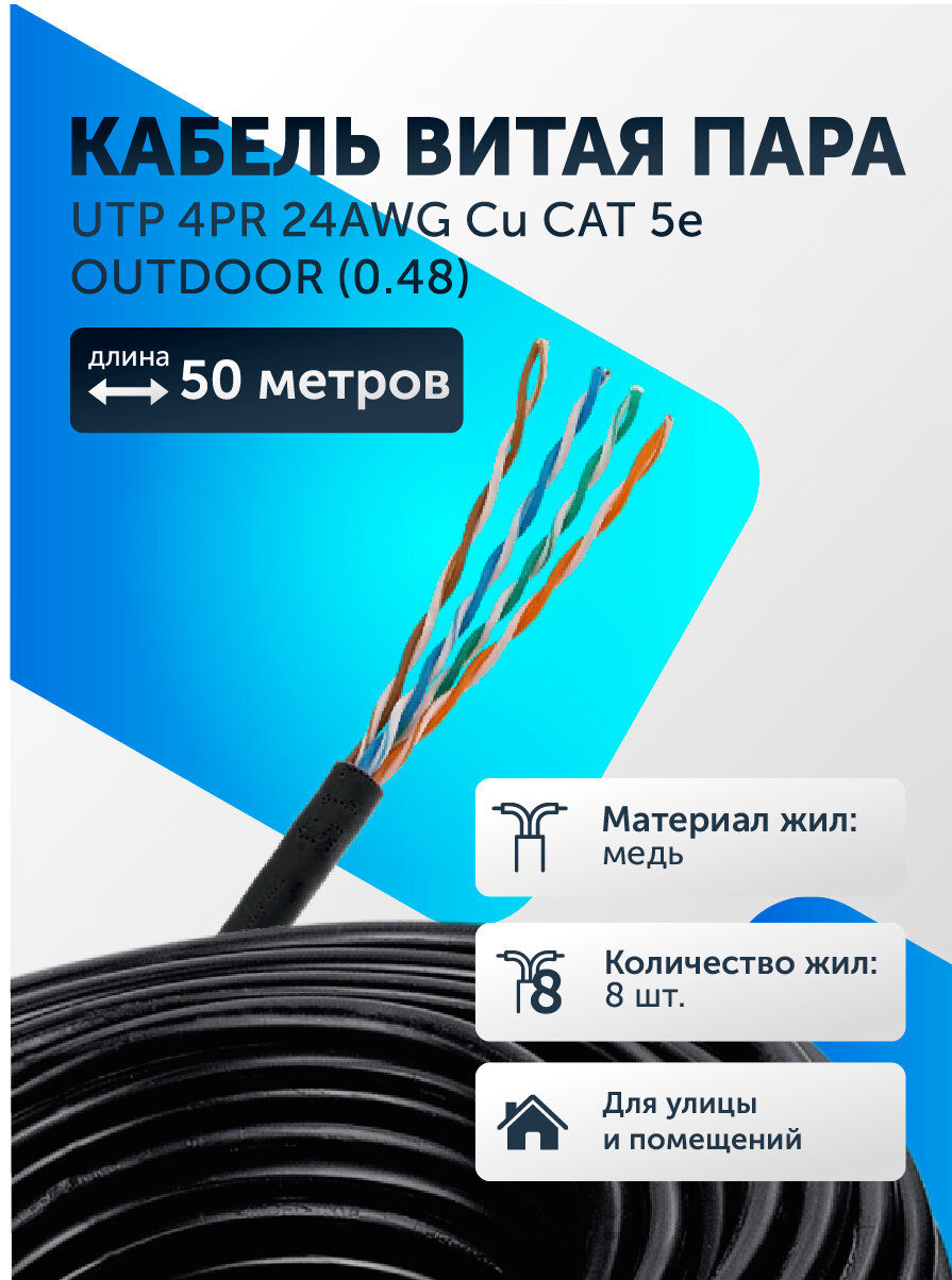 Витая пара кабель уличный U/UTP 4 пары 8 жил 24 AWG PE Cu CAT 5e (0.48) Медь UTP интернет кабель сетевой 50 метров: сравнение цен, характеристики, фото, актуальное наличие и цены.