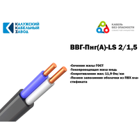 Кабель ВВГ-Пнг(А)-LS 2х1,5 ГОСТ Калужский кабельный завод, 25 метров