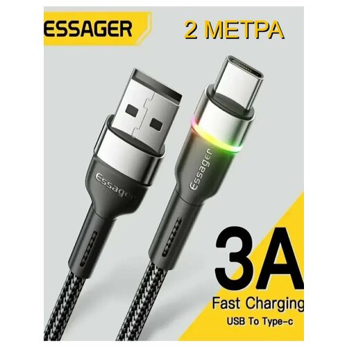 Купить Кабель зарядный Essager 3А USB Type C с индикатором 2 метра с доставкой по всей России. Кабель зарядный Essager 3А USB Type C с индикатором 2 метра: сравнение цен, характеристики, фото, актуальное наличие и цены.
