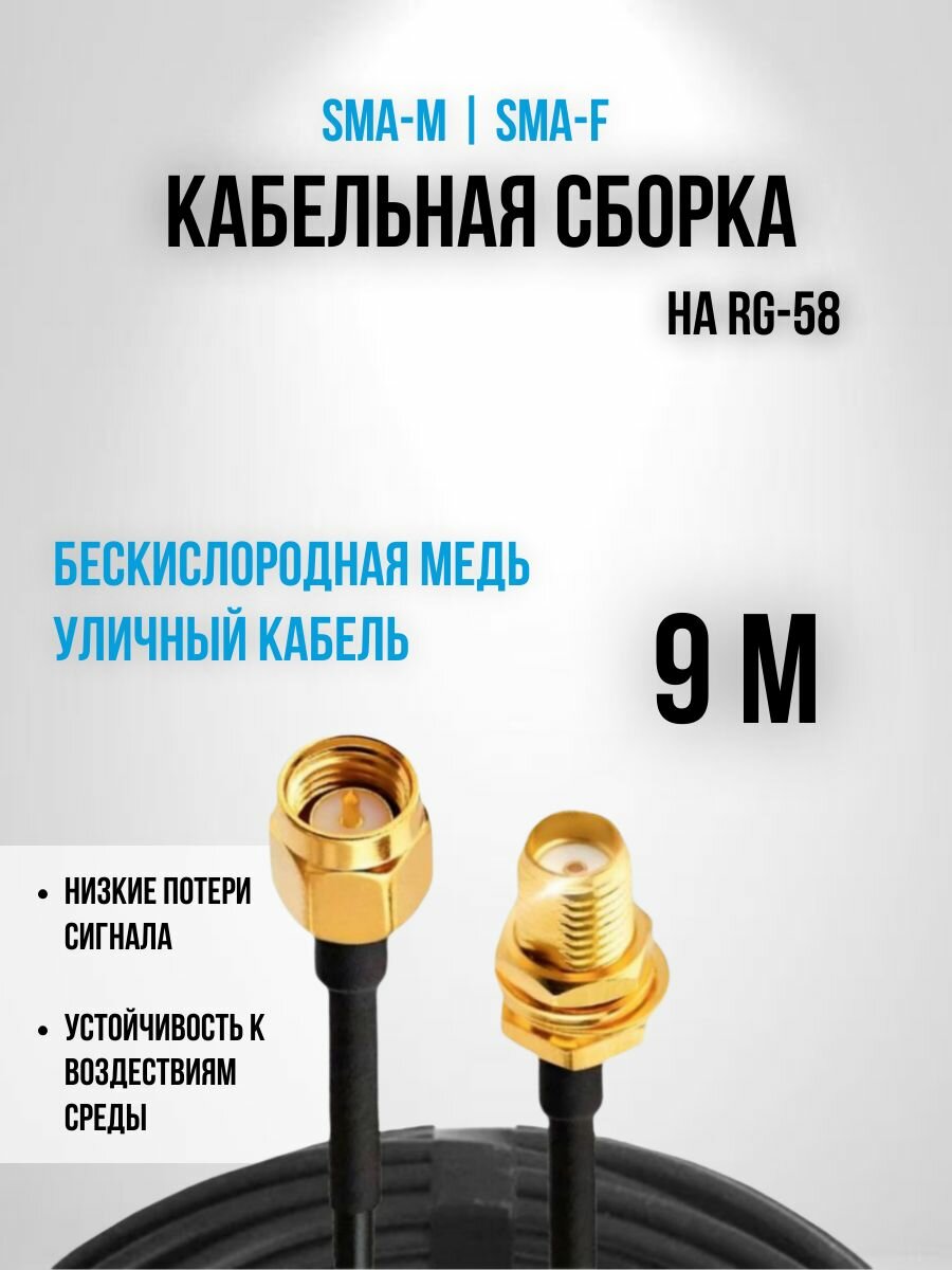Кабельная сборка RG-58 SMA-male — SMA-female, 9 метров удлинитель мама папа кабель 50 ом разъёмы sma-female и sma-male подходит для для раций Baofeng, TYT, Lira,: сравнение цен, характеристики, фото, актуальное наличие и цены.