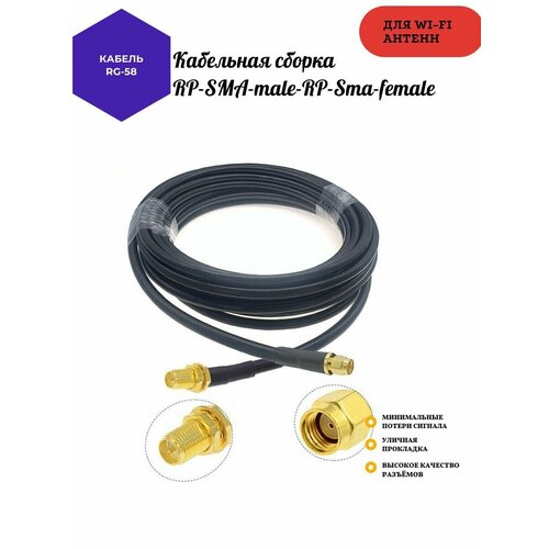 Кабельная сборка RG-58U с разъемами RP-SMA-male - RP-SMA-female, предназначена для подключения Wi-FI антенн, также данный кабель может использоваться как удлинитель RP-SMA-мама RP-SMA-папа.