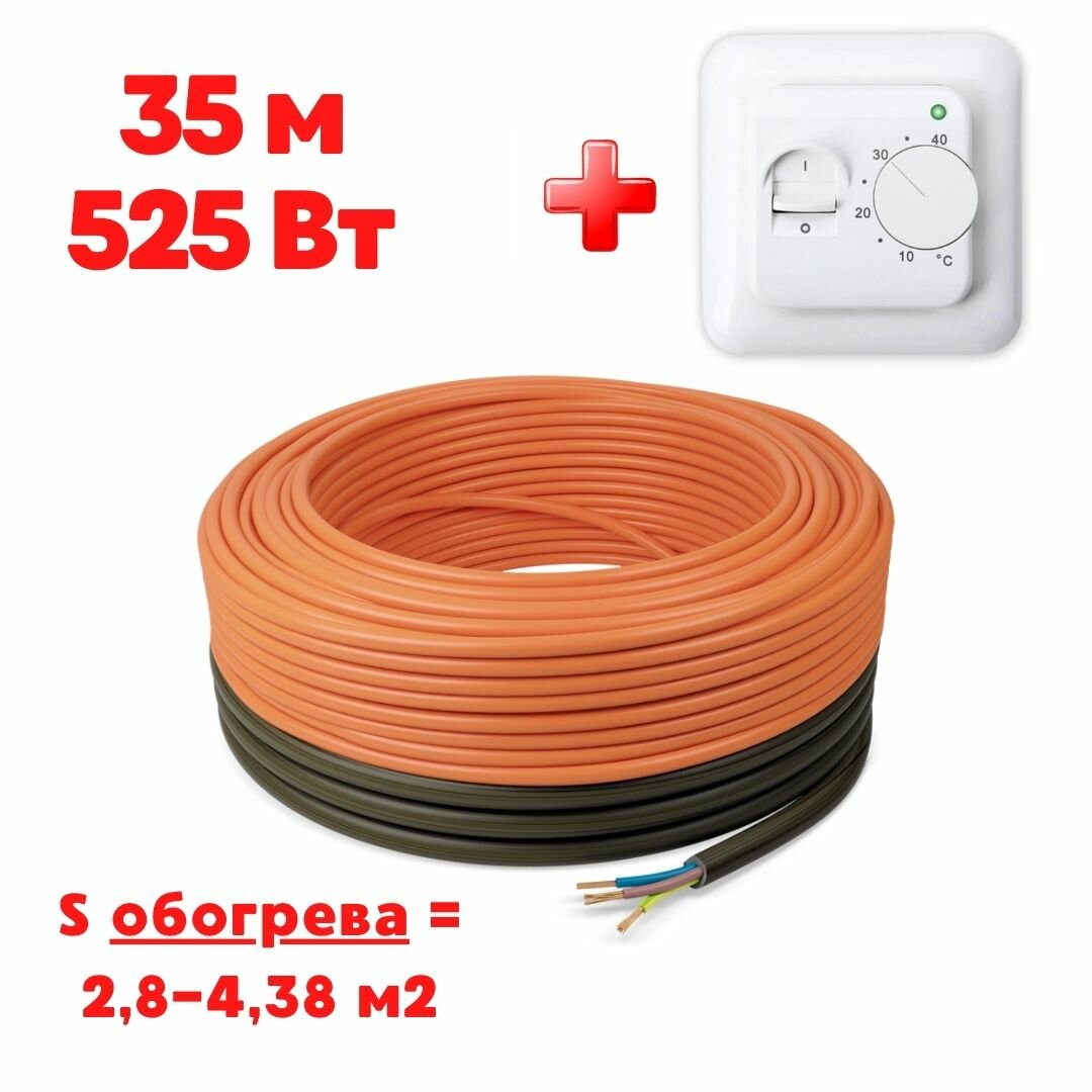 Купить Кабельный теплый пол электрический в стяжку Теплософт Профи 35м 525Вт с механическим терморегулятором под плитку, ламинат, паркет, линолеум, ковролин с доставкой по всей России. Кабельный теплый пол электрический в стяжку Теплософт Профи 35м 525Вт с механическим терморегулятором под плитку, ламинат, паркет, линолеум, ковролин: сравнение цен, характеристики, фото, актуальное наличие и цены.