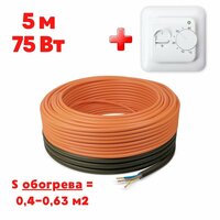Купить Кабельный теплый пол электрический в стяжку Теплософт Профи 5м 75Вт с механическим терморегулятором под плитку, ламинат, паркет, линолеум, ковролин с доставкой по всей России. Кабельный теплый пол электрический в стяжку Теплософт Профи 5м 75Вт с механическим терморегулятором под плитку, ламинат, паркет, линолеум, ковролин: сравнение цен, характеристики, фото, актуальное наличие и цены.