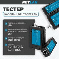 Кабельный тестер NETLAN RJ45, RJ12, RJ11, BNC EC-CT4511B служит для тестирования кабельной сети на правильность разводки и целостности кабельной линии в полевых условиях.