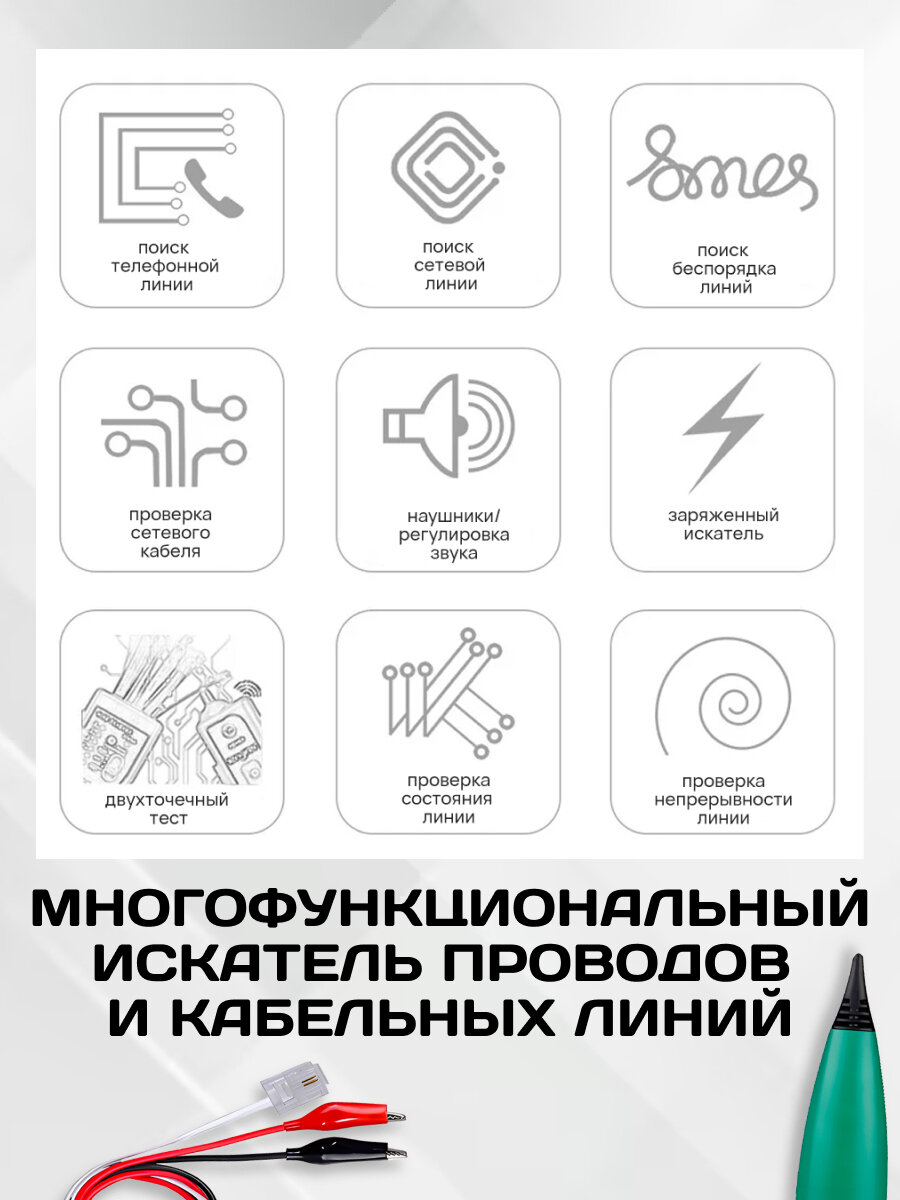 Уникальность данного продукта заключается в его функциональности. Он не только позволяет находить скрытые провода, но и генерирует сигнал, который помогает определить точное местоположение проводки. Это значительно упрощает процесс работы и экономит время.