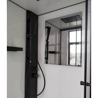 душевая лейка, зеркало, поддон, полки, сиденье