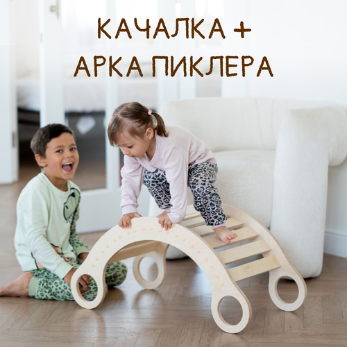 Арка Пиклера предназначена для физического развития ребенка. Качалка детская подходит мальчикам и девочкам. Балансир помогает детям развиваться физически, способствует улучшению двигательно-моторной координации. Горка для малыша тренирует мелкую моторику, тактильное восприятие, память и концентрацию ребенка. Качалка безопасна в использовании, дети могут пользоваться самостоятельно.